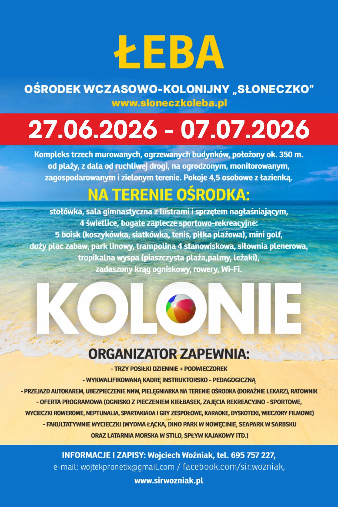 Kolonie Łeba - 2026 program imprezy